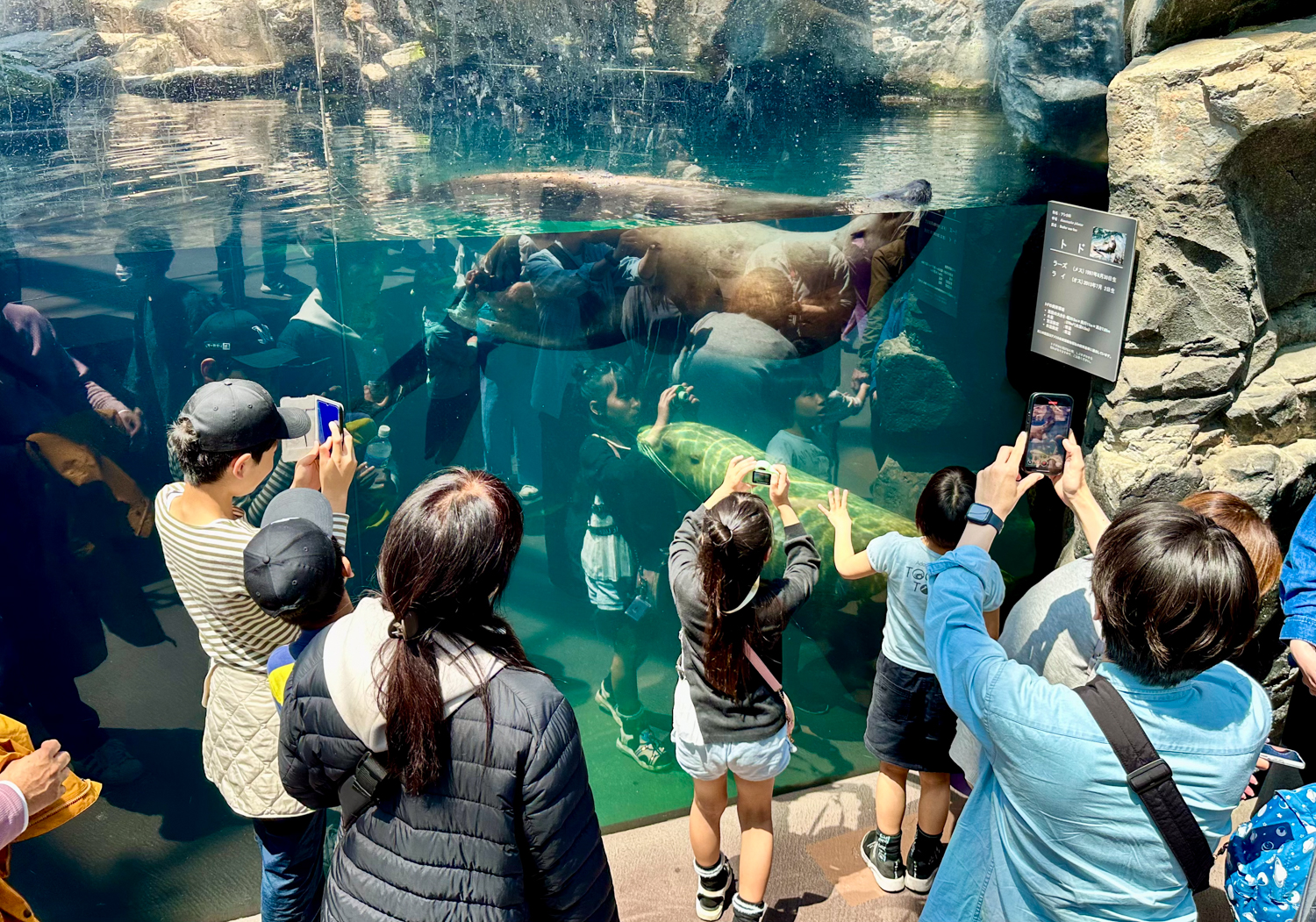 「いわき・ら・ら・ミュウ」方面から聞こえてくる楽しそうな太鼓の音(後で調べたらエイサーだったみたい)と人だかりも気になったが、アクアマリンふくしまへGO。