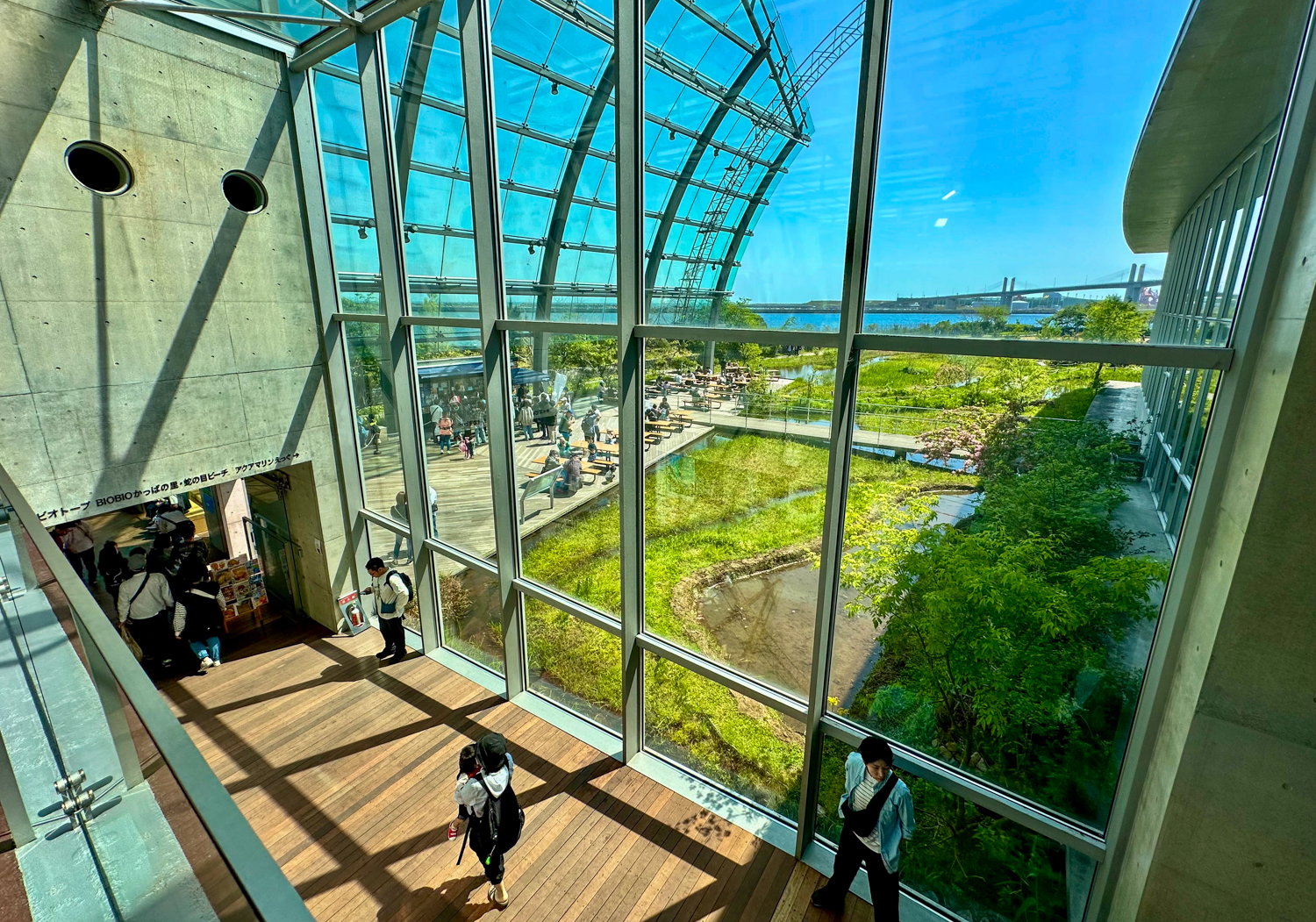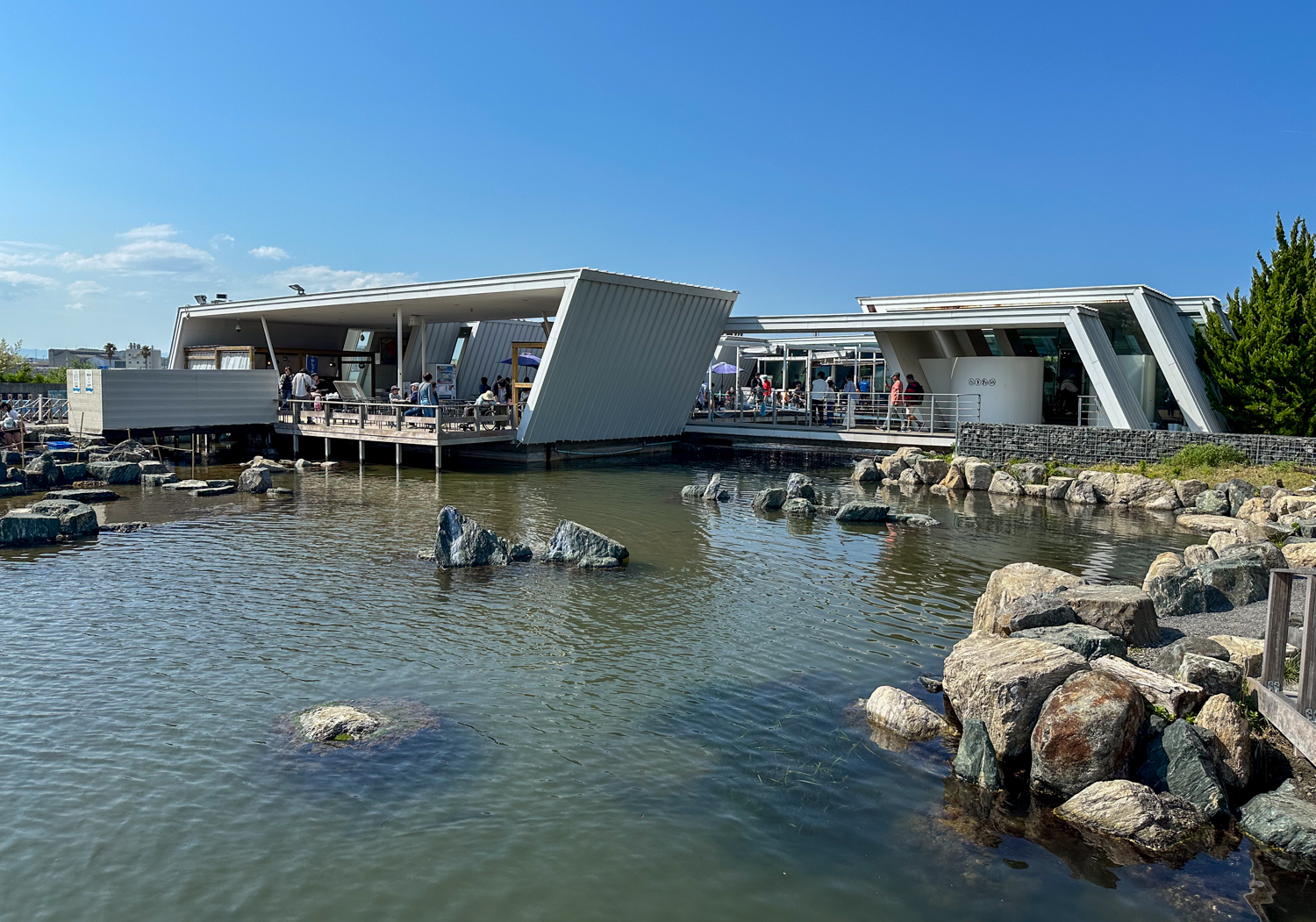 アソビューでチケット買って入場。全ての建物が凄い綺麗。壁や屋根が透明で物凄く開放感を感じる。この日はド快晴だったので、太陽と青空に透明なアクアマリンふくしまの建物が凄い映えてちょっと感動物でした。